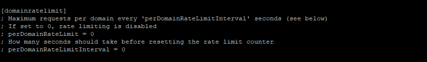 - Change the value under the “Domain rate limit” and under the “Domain rate limit interval” sections